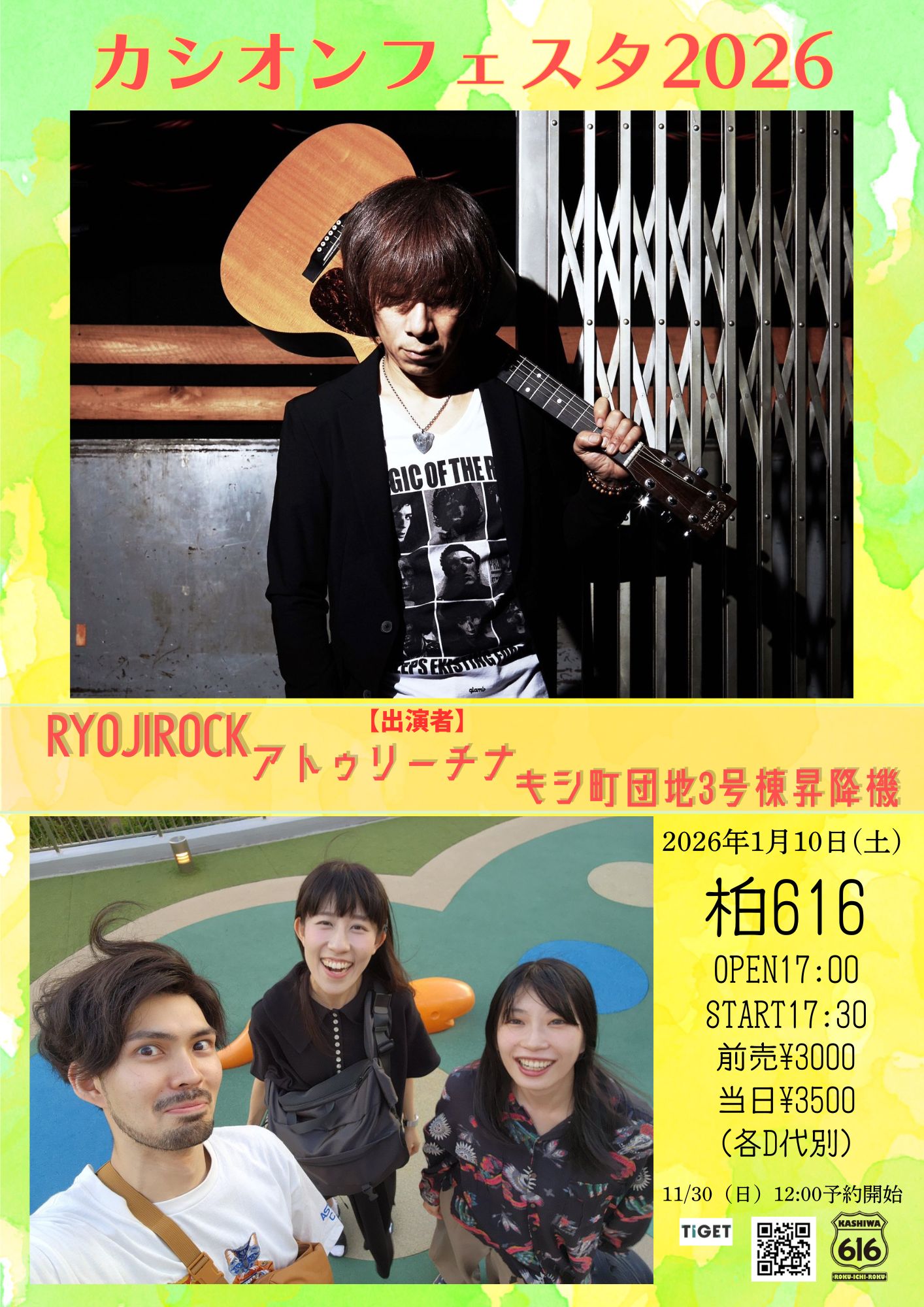 【出演】 RYOJIROCK / キシ町団地3号棟昇降機 アトゥリーチナ OPEN17:00START17:30 前売¥3000/ 当日¥3500(各D代別) 【TIGET】 https://tiget.net/events/443419