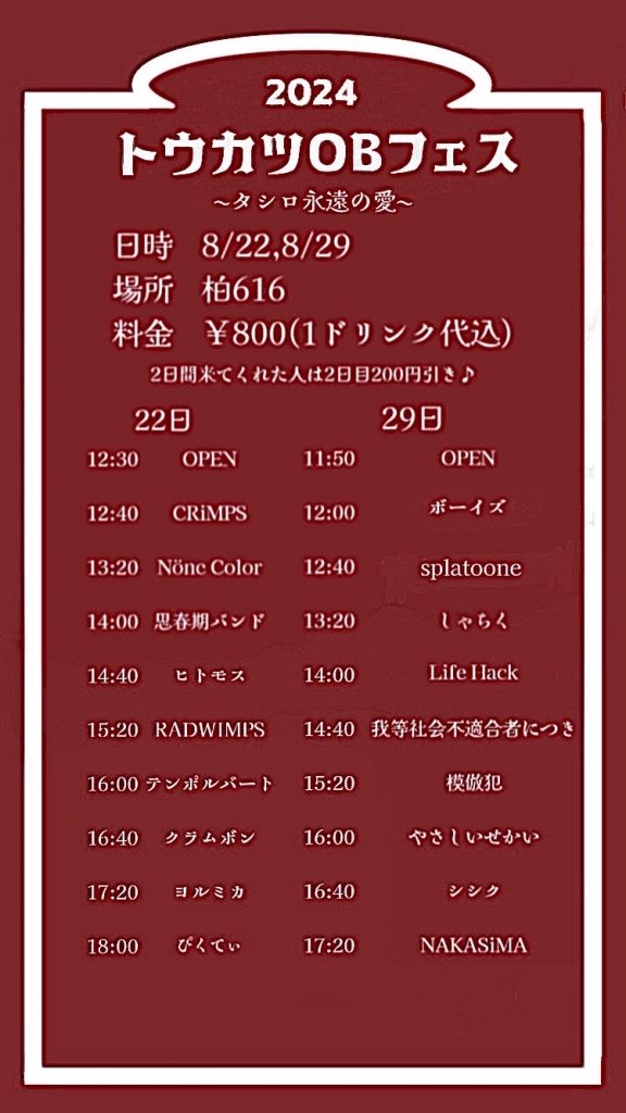 | | | 29トウカツOBフェス〜タシロ永遠の愛〜
