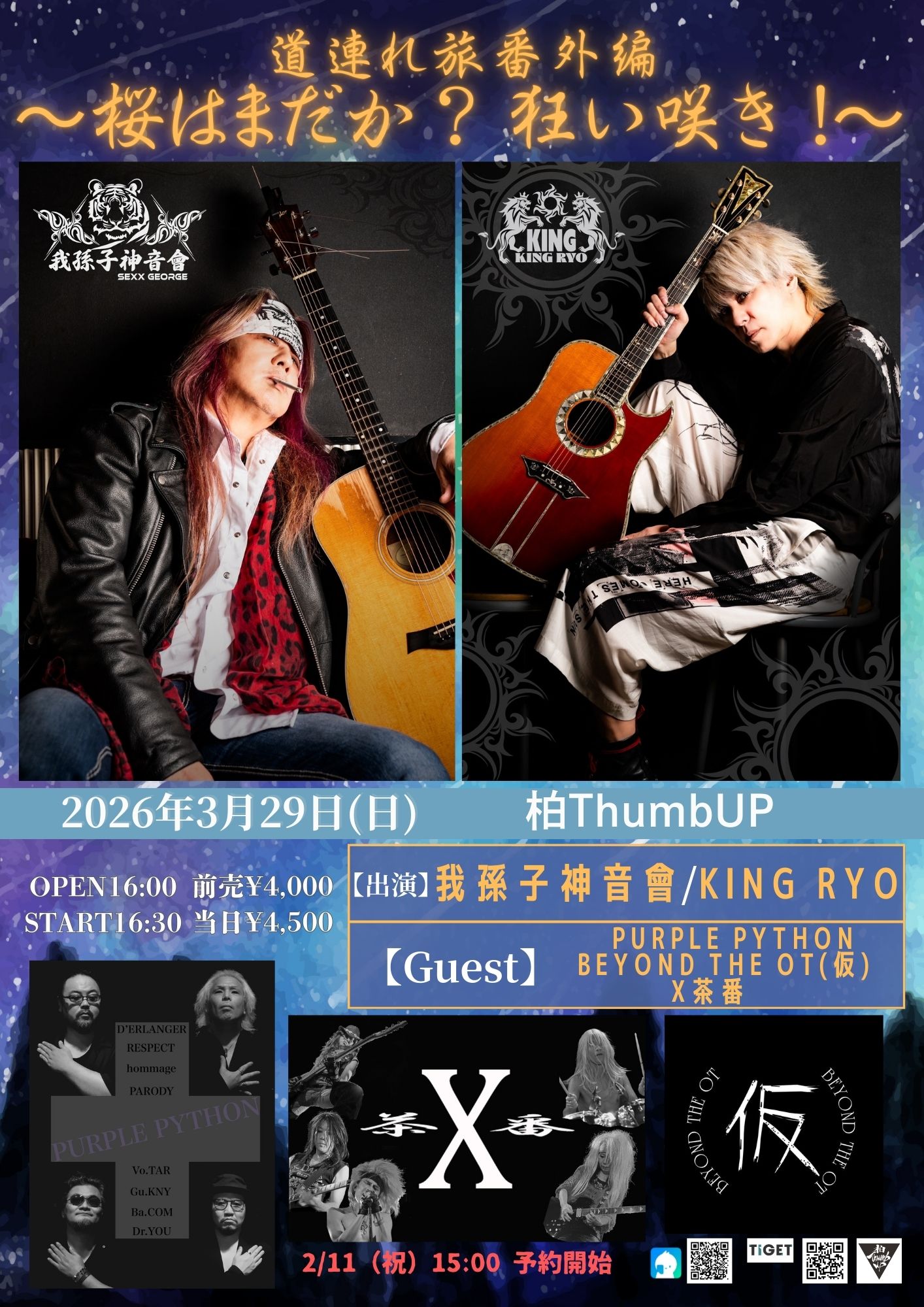 【料金】前売¥4,500 当日¥5,000(各D代別)