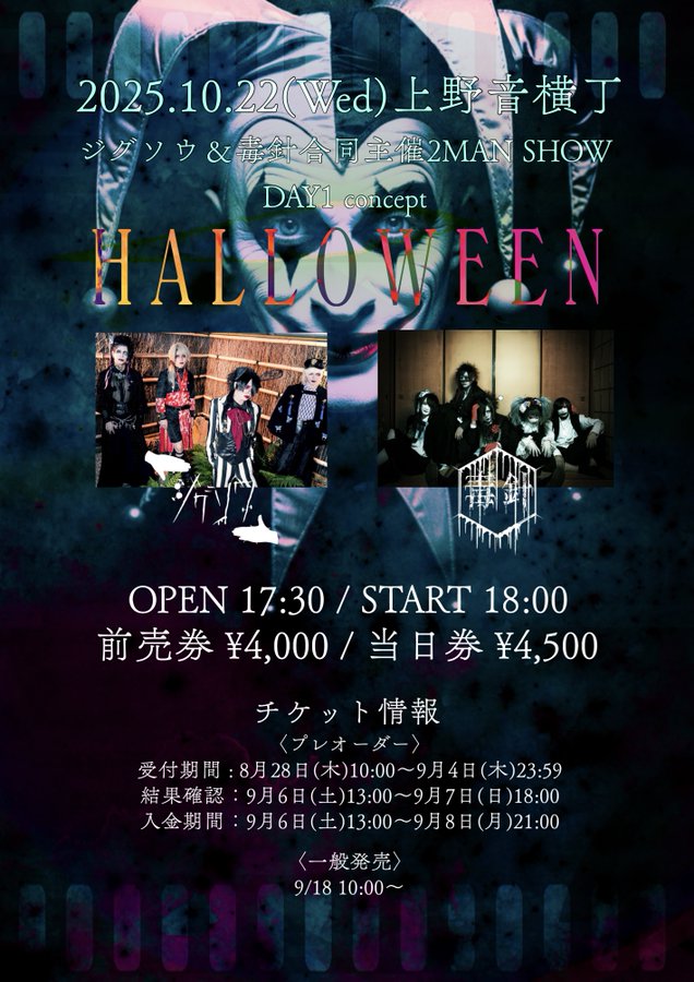 【出演】ジグソウ / 毒針 | 23ジグソウ&毒針合同主催2MAN SHOW DAY2 concept 「蠱毒の骸」