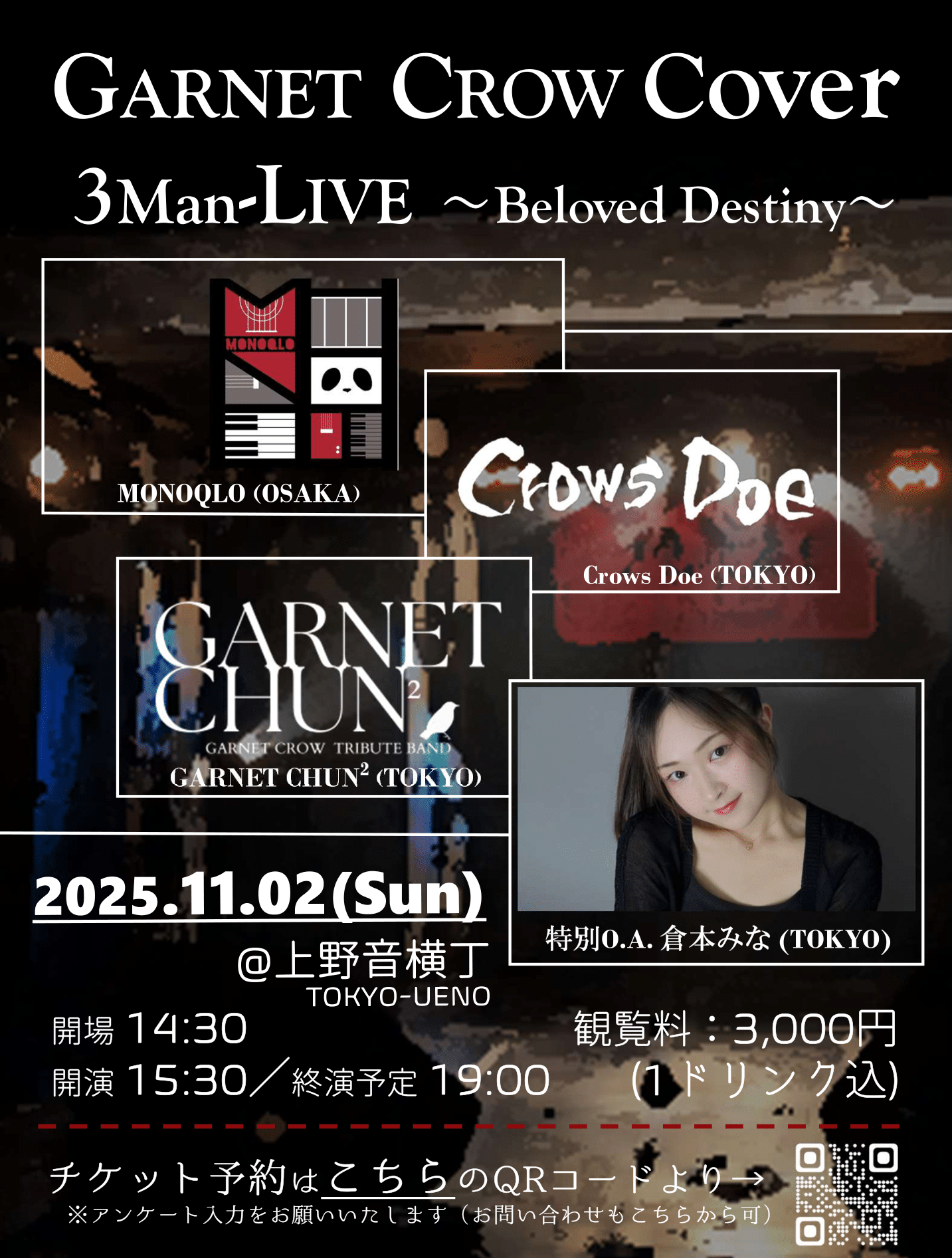 【出演】MONOQLO / Crows Doe / GARNET CHUN*2 / 倉本みな | |||