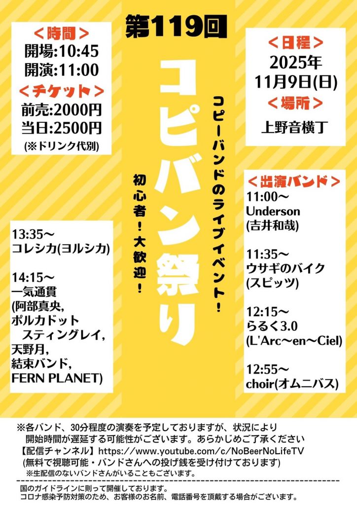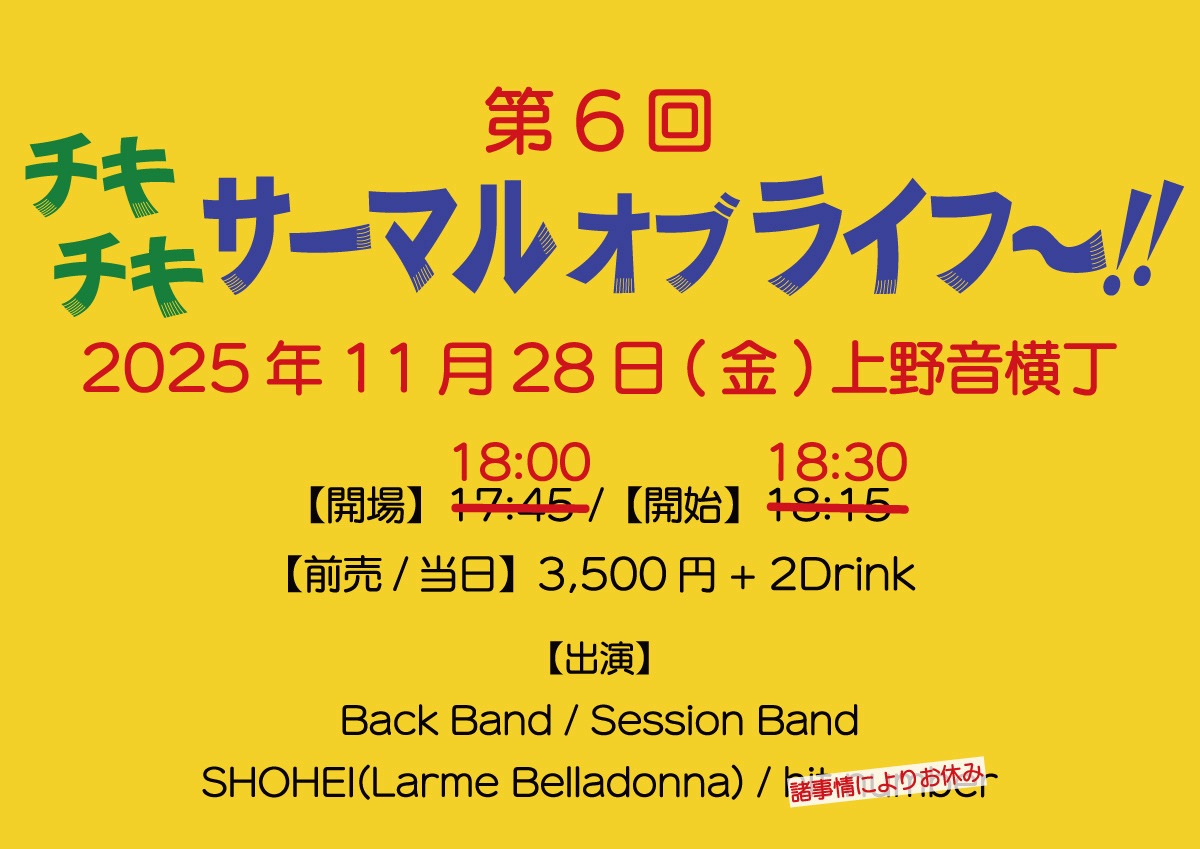 【出演】Back Band / Session Band / SHOHEI(Larme Belladonna) | 29上野音横丁 11th Anniversary Live「PUSH!!」