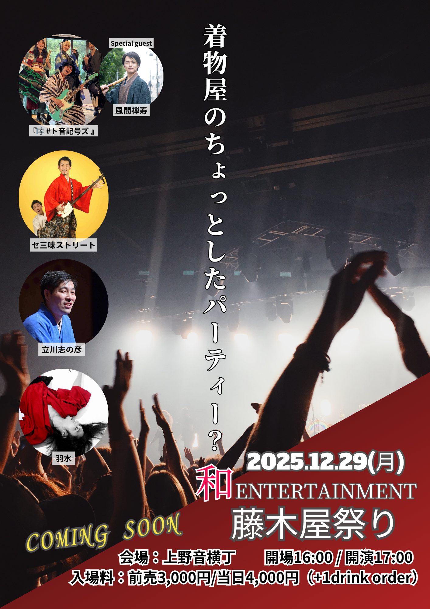 【出演】🎼ト音記号ズ(バンド)/ 立川志の彦(落語)/ セ三味ストリート(三味線パフォーマンス)/ 羽水(水墨画ライブペイント) | 30上野歳末ブルース 2025