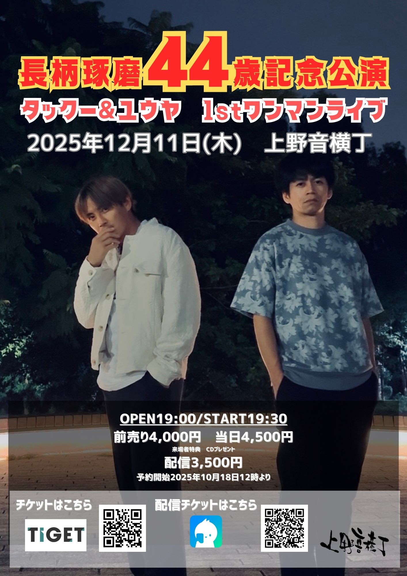 ※貸切営業となります。 | 11長柄琢磨44歳記念公演 タックー&ユウヤ 1stワンマンライブ