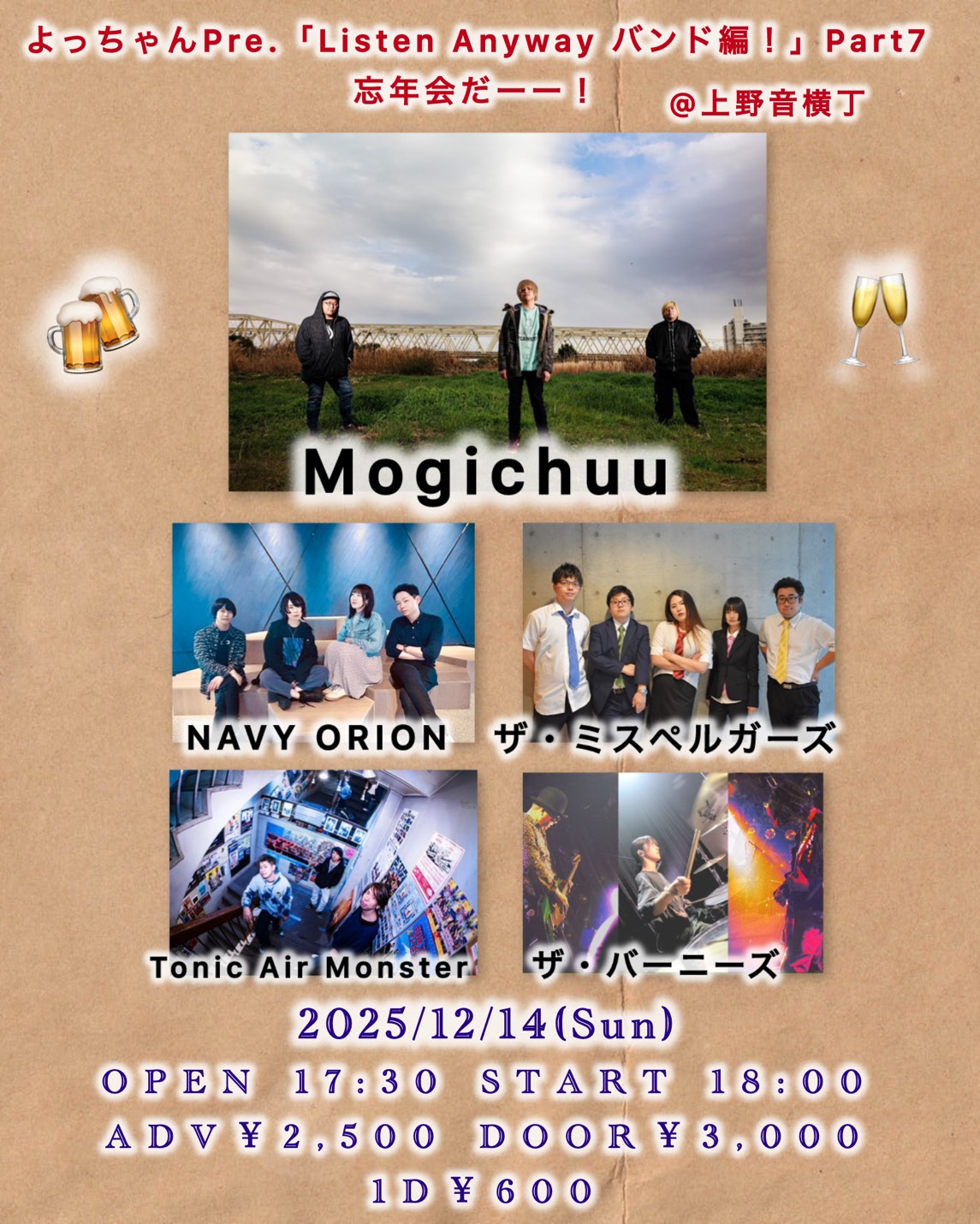 【出演】Mogichuu / NAVY ORION / ザ・ミスペルガーズ / Tonic Air Monster / ザ・バーニーズ | |