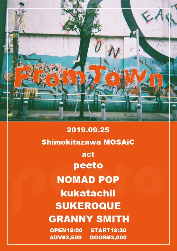 投稿日: 2019年8月14日2019年8月14日 投稿者: amaike9月25日 下北沢mosaicにて ”From Town” 開催!! 2019年9月25日に下北沢mosaicにて共催企画From Town開催!!! チケット予約はtwitter DM又はお問い合わせまで
